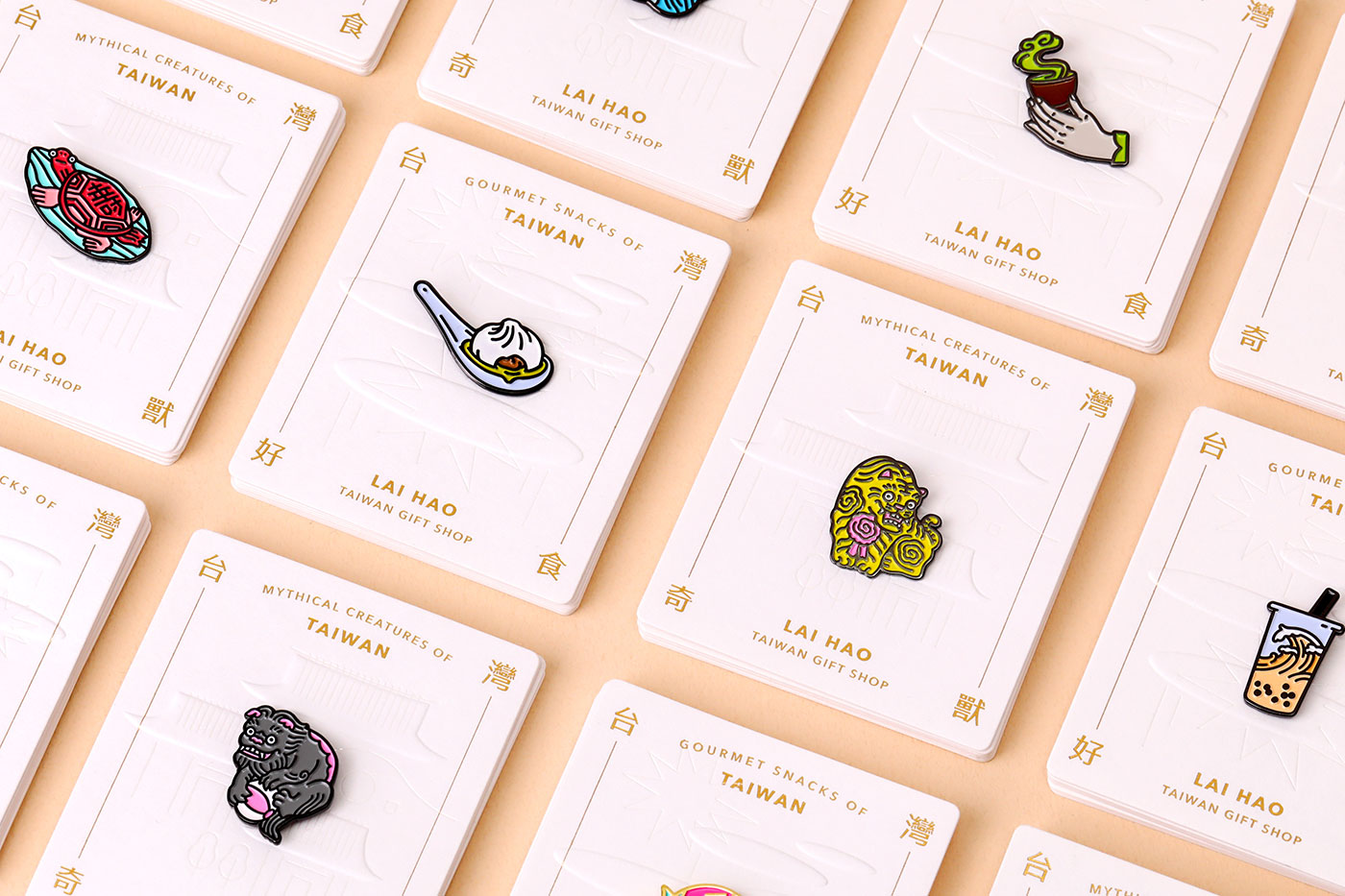 由於有共同的理念,四木設計與來好商號合作起來,就如同朋友一般,多次合作累積出信任感,所以便放手讓建宏操刀此次的台灣徽章設計,從整體企劃、設計發想、文案內容都是建宏獨力完成。建宏在設計前期觀察、蒐集資料時,發現台灣很多伴手禮都是以建築物為主,如101、中正紀念堂等,相似的商品太多,無法讓伴手禮有突出的表現。所以建議來好商號以台灣美食做成徽章,一方面台灣美食本來就很吸引外國人,二方面做成徽章小巧可愛;而台灣奇獸系列則是受到日本的影響,在日本當地看見招財貓會想買,除了覺得它很可愛之外,也是因為招財本身具有話題性。