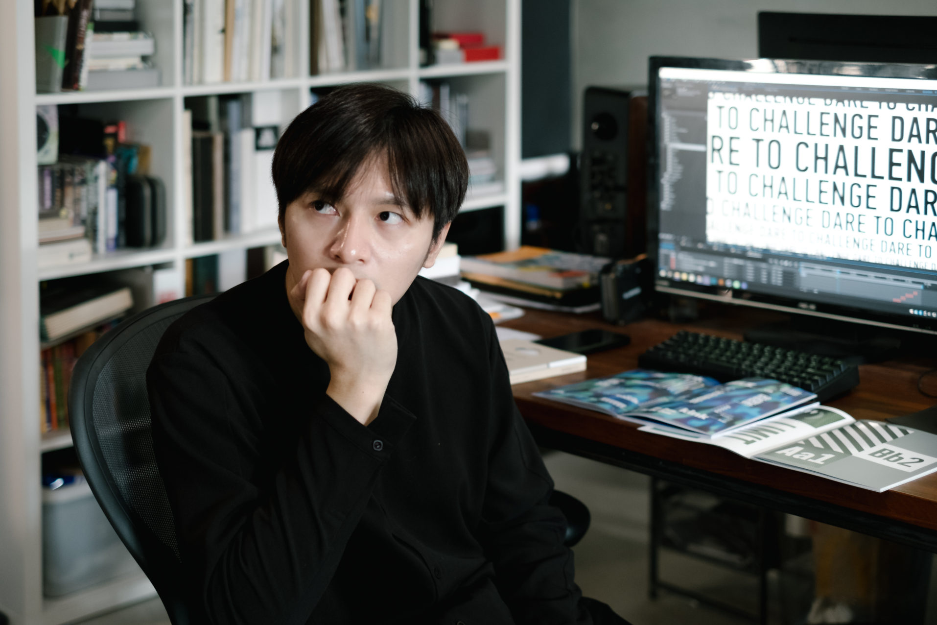 跳脫平面與靜態的框架,他成功以令人驚豔的動態元素與互動式體驗,豐富了「Type Waterfall」展覽。他認為自己在專案裡比較像導航員,東一句、西一句提供顏色和技術的建議,讓大家不致於沉迷在技術細節,或是因為場地限制而刪掉真正重要的東西,讓各組的工作都能聚焦在最後的體現上。「後來他們說這叫做『Art Director』,久而久之就被掛在我身上了。」他說。