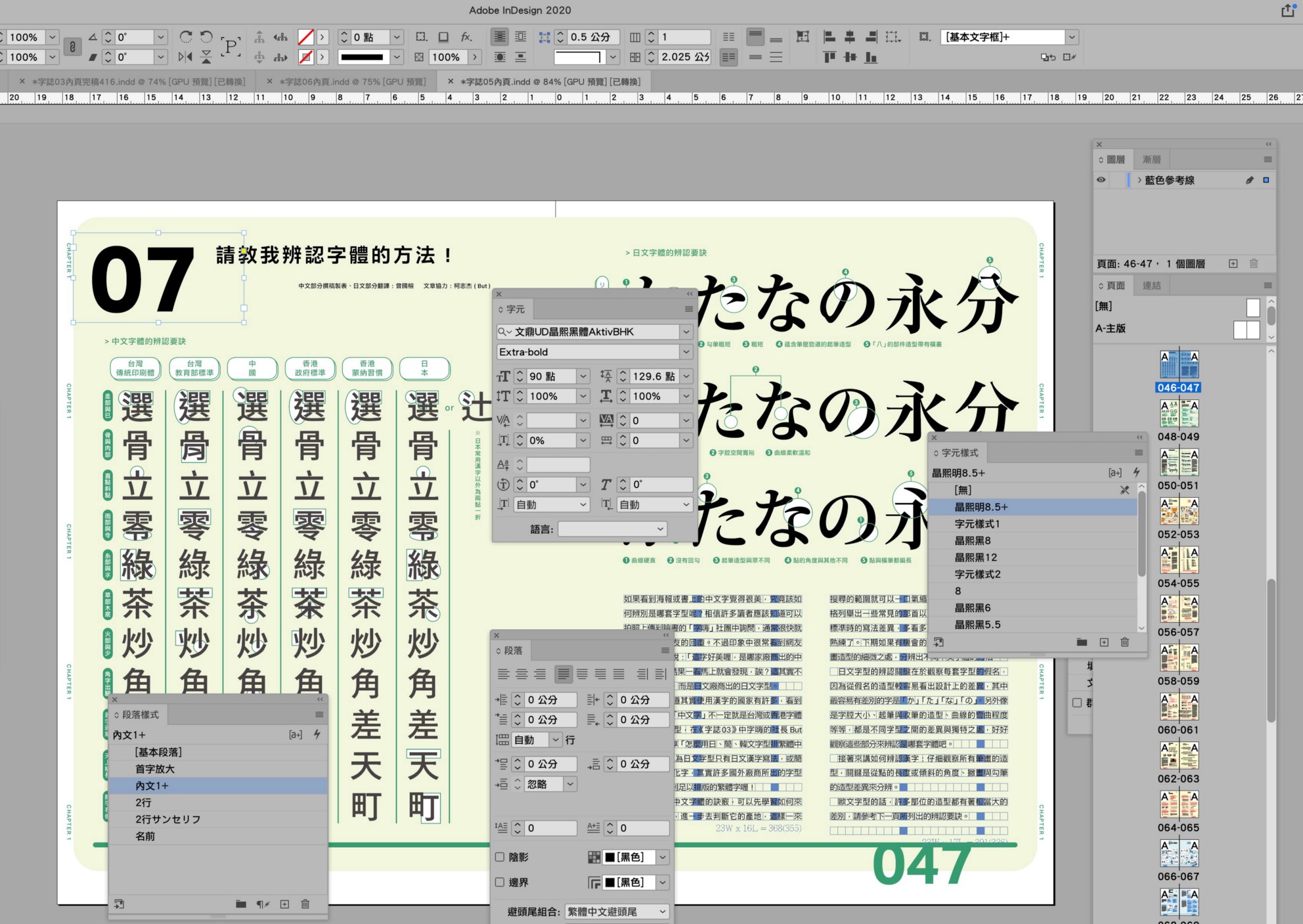 換言之,對於設計相當堅持的葉忠宜,在字體尋找的路途上依然不停歇。像是中文的使用,他特別講究內文字體需要的工藝性,因此還尚未發現心目中完美的中文內文字型,因此他通常會先選擇高規(漢字量較多)的日文字體,闕漏字再自己補上,甚至標點符號、數字都會混用超過一個字型,以及不同的版面設定,來構成最想呈現的版面。他特別舉例,像是字游工房出品的「游黑體」就是他常用的字體之一。「雖然有 Apple 內建,但僅有字重版本『 Regular 』和『 Bold 』,若要用這字體排中文,則是位於這中間的 Demibold 版本最好用 , 但必須另外購買 。 超賊的!最好用的東西都得另外購買。 」
