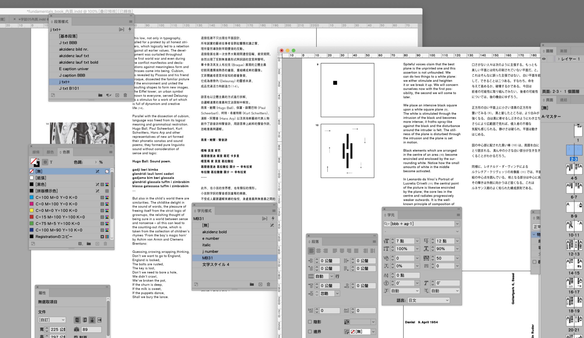 而籌備過程中,也有令他大感驚喜的時刻:由於書籍原文版本通常都是由大師操刀設計,因此收到原文版的 InDesign 編排檔案時,他就能親眼一窺「大師的設定」。例如像《本質》,無論原文或日文版,都由知名瑞士設計師 Helmut Schmid 設計排版。每一個字體的大小、每一個符號往上幾單位,都能全部攤開。像 Schmid 因為思考如何讓日文完美匹配原文的視覺閱讀性,會將特別選定的日文字型再進行微幅的伸縮調整,如此葉忠宜就會知道 Schmid 要的點是什麼。
