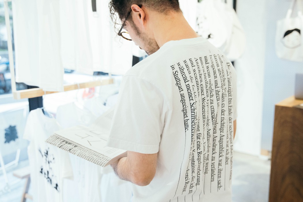 穿上為體排印新浪潮學派之父 Wolfgang Weingart 書籍和展覽特別設計的衣服。