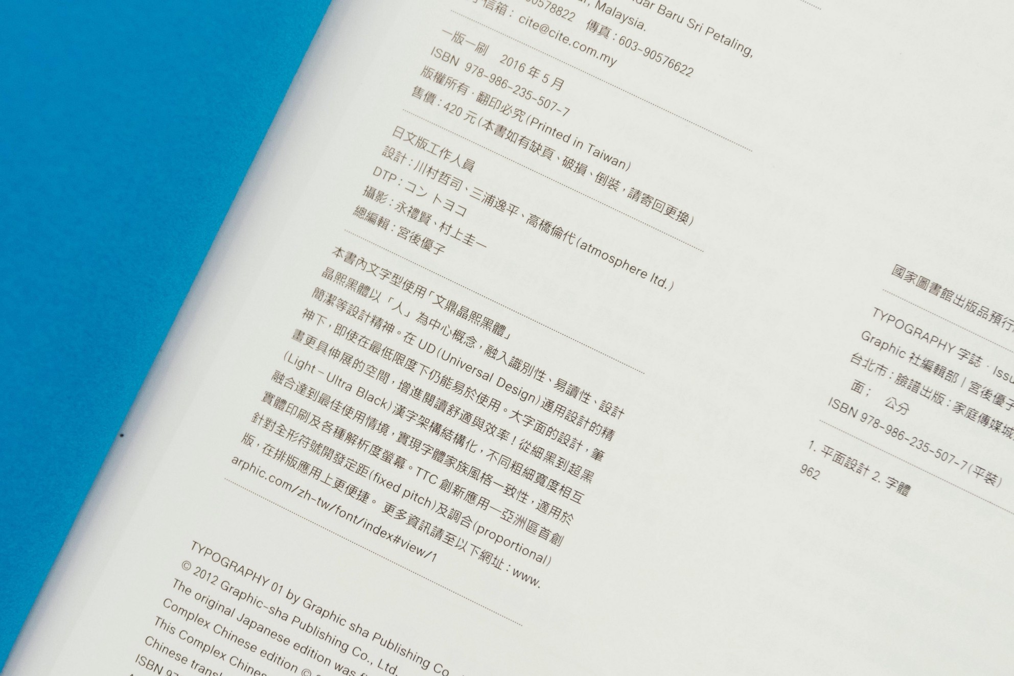 至於中文內容,光是字體選擇便大有學問。《Typography 字誌》選用的是「文鼎晶熙黑體」,此字體具備「通用設計」(Universal Design,簡稱UD)的概念,亦即「同時顧及大眾及弱勢者的需求為出發點」。關鍵在於,以中文字而言,其由各筆劃所包圍出的字腔較大,或用書法的九宮格來想像,各筆劃都遠離最中間那格「中宮」,呈現出「中宮放鬆」(而非中宮緊湊)的狀態。在這種情況下,即便字級相同,視覺上也會看起來更大,因此就算放成小字可讀性也高。然而應用在生活上,也適合做為交通指示用字,或利於視力不便者辨識。