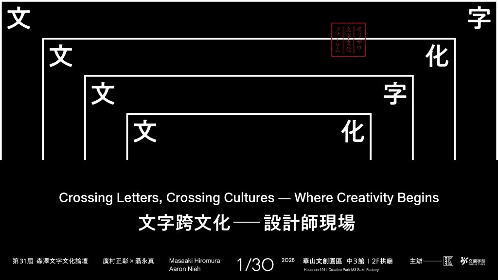 日本字體設計巨擘森澤與台灣的文鼎字型,將於1月30日共同舉辦「森澤文字文化論壇」,邀請日本設計師廣村正彰與台灣設計師聶永真,共同深入探討文字設計的跨文化價值,此為該論壇自2010年開辦以來,首度移師海外舉辦。