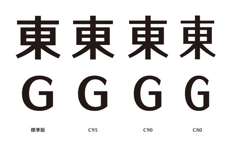 Condensed設計可不只是把字型直接壓窄這樣簡單,方新書 Condensed 80 提高重心,稍增橫筆的寬對比(C80 – 約56%,標準版 – 70%)。