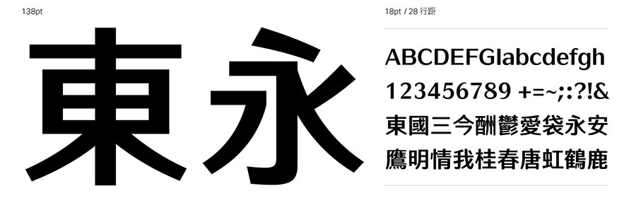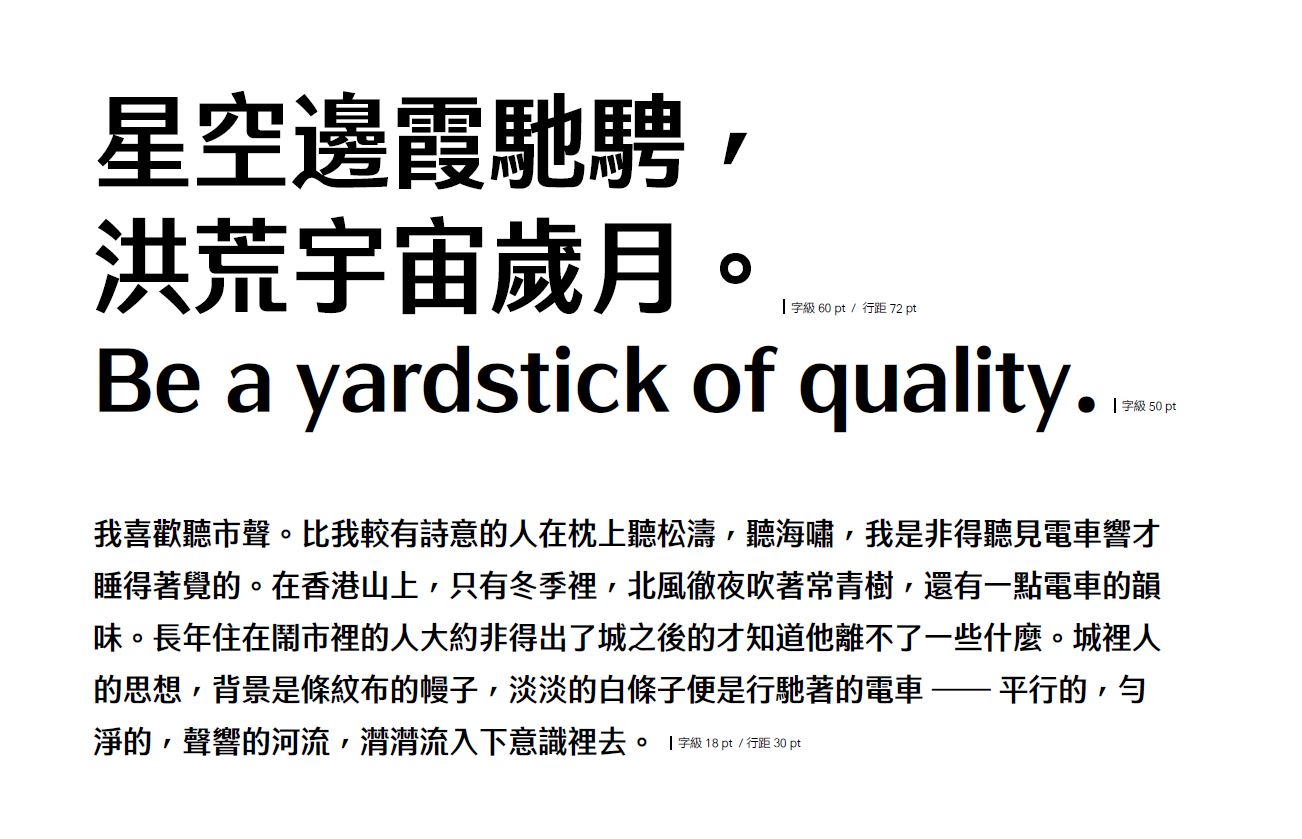 中文字元筆畫數不一,可從僅一筆急增到64筆;所以寬度策略尤其重要,外粗內細、主粗副細,方新書擁有均勻的字元灰度,小size都能輕鬆閱讀。