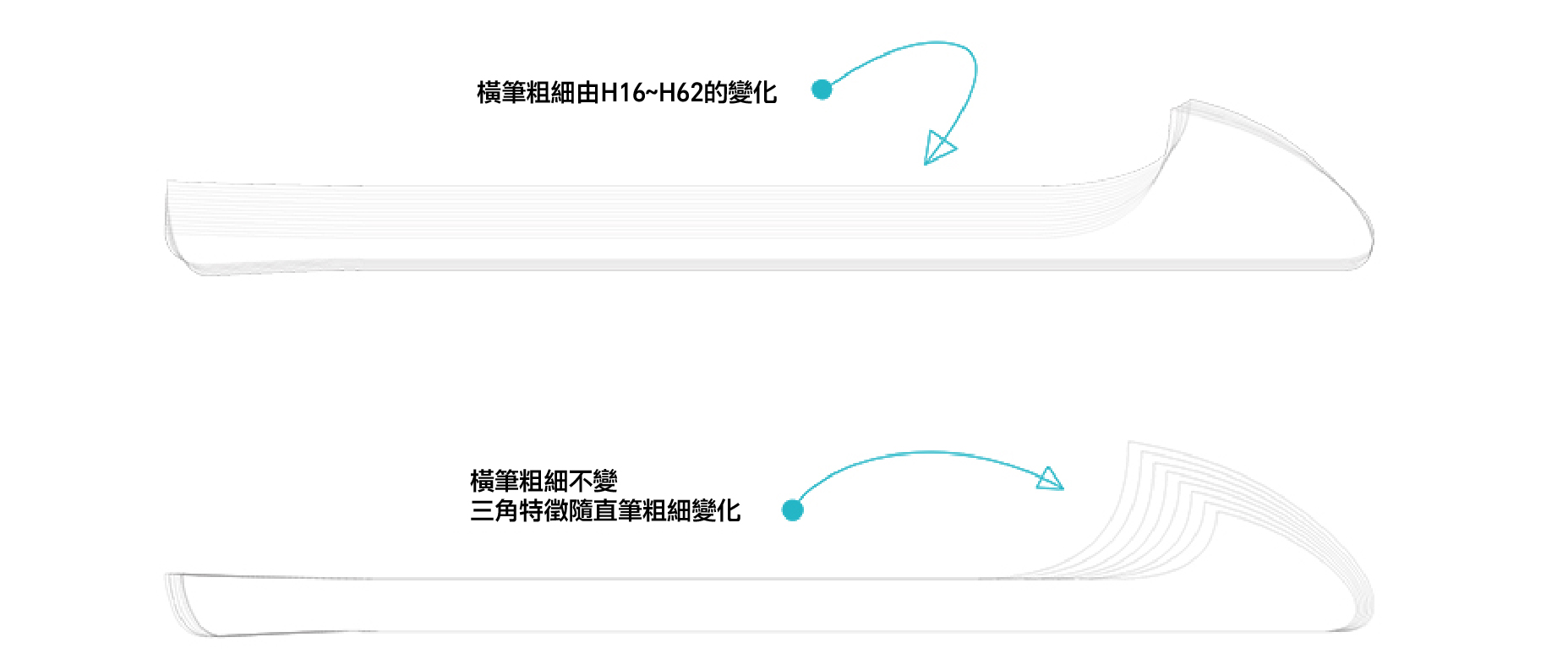不同字重的情況下進行曲線及字構微調,以達到視覺平衡。