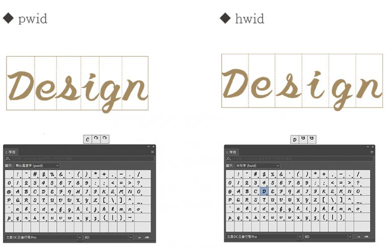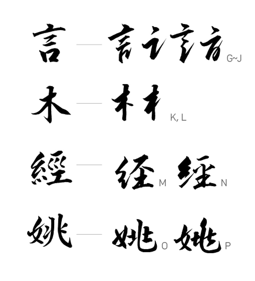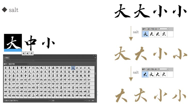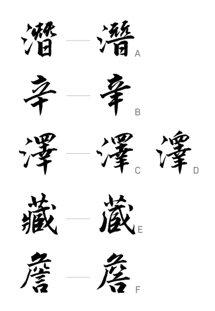 OTFバージョンの特徴は「繰り返し文字」、つまり同じ文字を違う書き方を持たせることです。