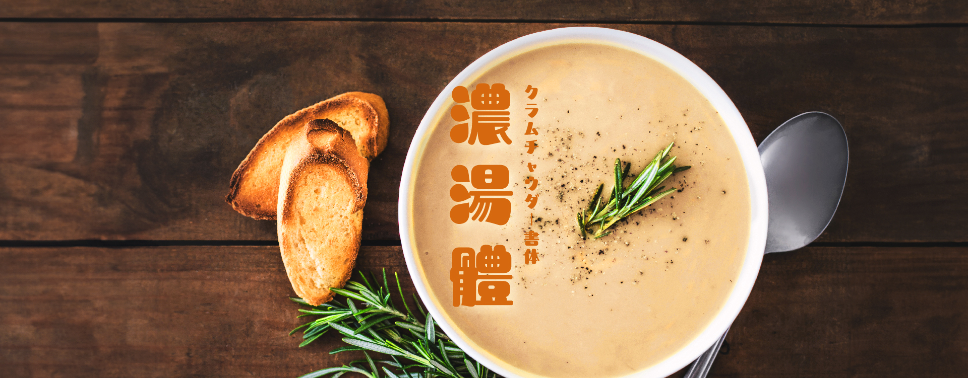 見た人を自然と笑顔にする、それが「クラムチャウダー書体」です。本書体の豊かで生き生きとした表情は、まるで一文字一文字にそれぞれのストーリーがあるかのようです。